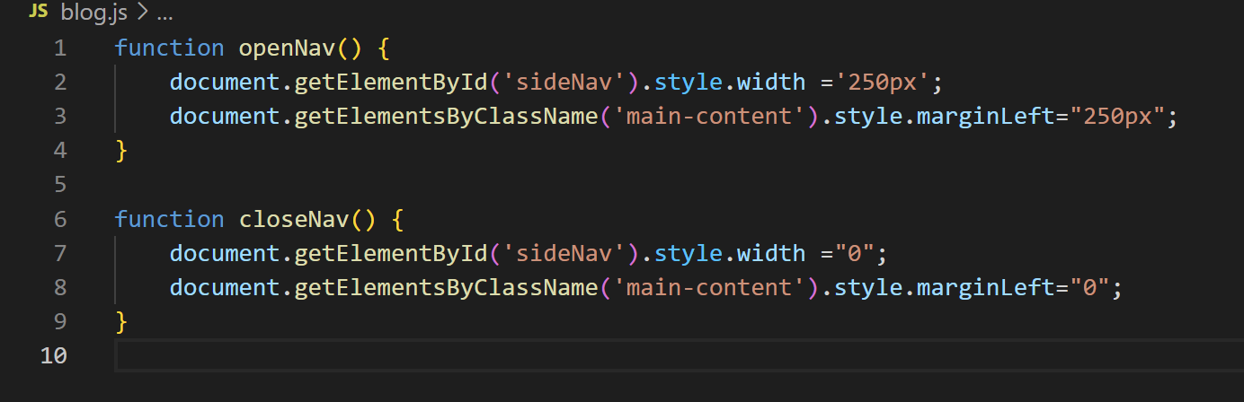 This function, although coded with the intention to bring out the side bar by pushing the main content to the right
