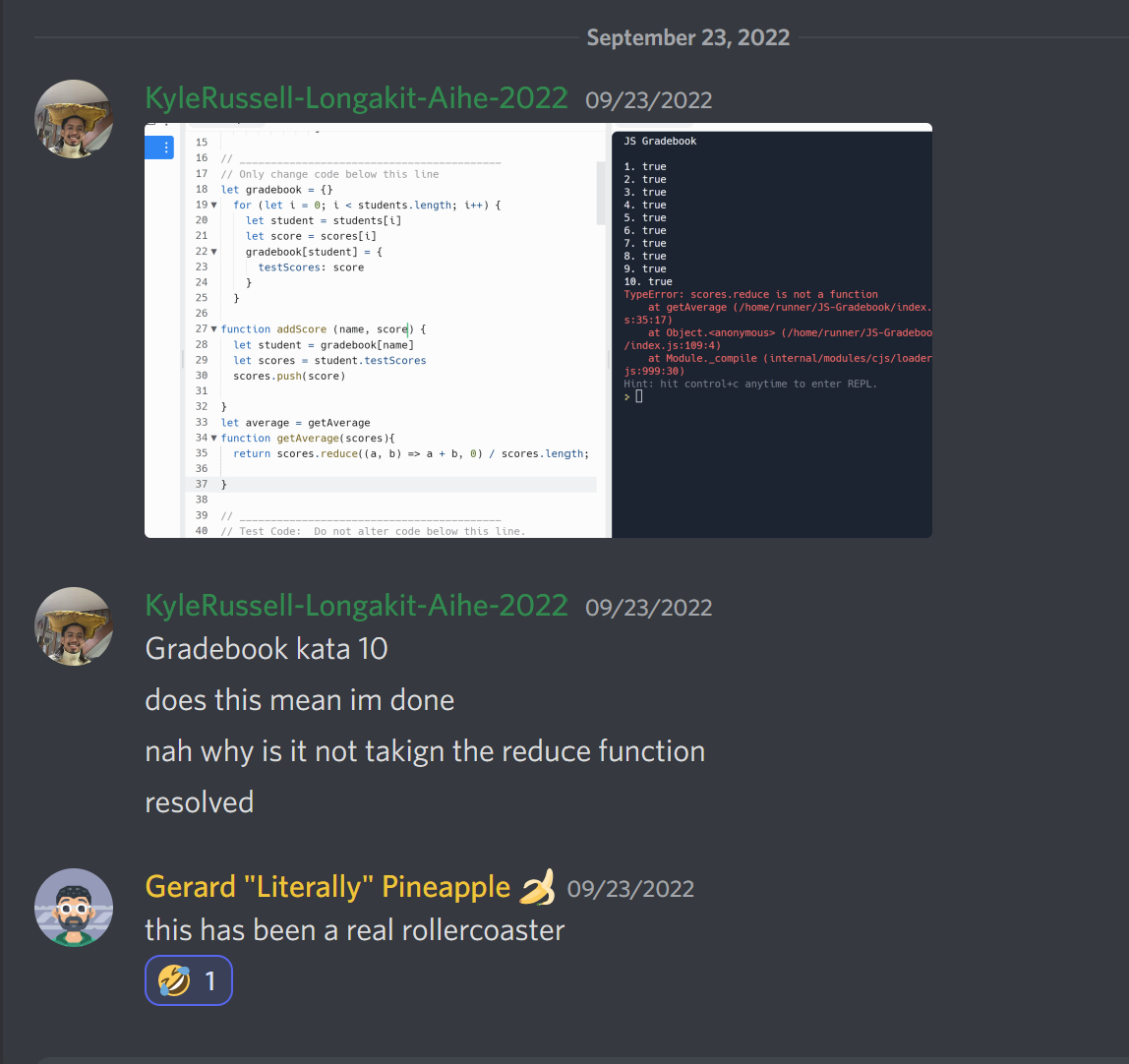 through the error messages I was getting. It was no surprise I went over the timeboxes after the first two Repls,