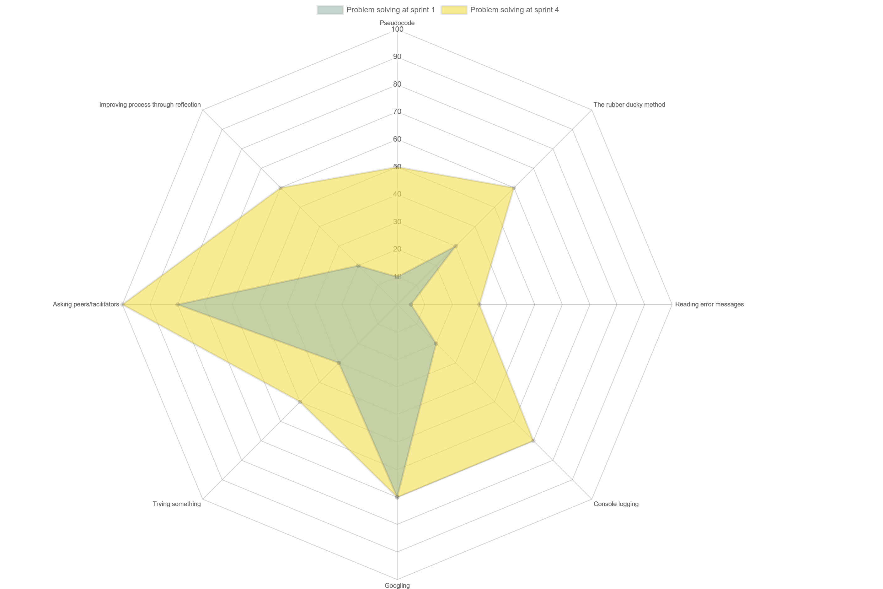 I rated myself out of 100 for all the problem-solving methods, for both sprints 1 and 4. Over the past few weeks I